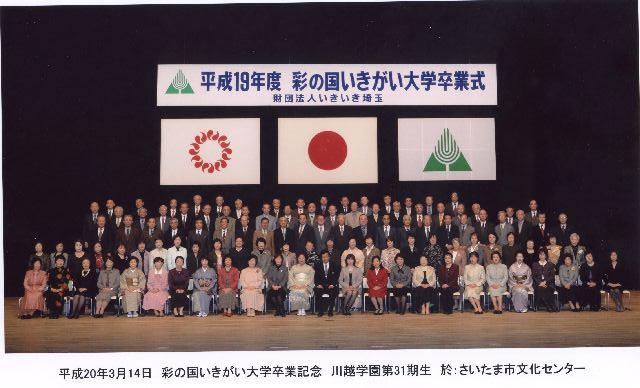 H20.3.14生憎の小雨の中、南浦和のさいたま市文化センターでの川越学園120名の卒業式が行われました。13時から式典が始まり、県歌斉唱。上田県知事の挨拶、そして卒業証書が手渡されました。蛍の光を斉唱した時、時代の進展に遅れまいとこの学園で学んだこと、交流の輪を広げたことなど、これからの短い人生を歩む上に貴重な糧となった事を確信しました。終って大宮のそごうの銀座アスターで会食。皆晴れやかな中で卒業後の再会を約束しました。 2008年3月14日