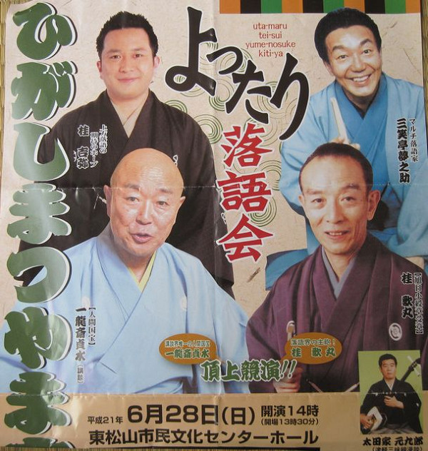 6月28日(日)「かぶの会」の有志で東松山市民文化センタに出かけました。ホールの3階席でステージからかなり離れていましたが歌丸、夢之助等の「よったり落語会」は寄席と同じような雰囲気で色物の噺に笑いの連発でした。珍しく着物姿で楽しんでいる方が多く見られたのは主催者のプレゼントがあるとのこと、思わぬところで初夏の気配を感じました。落語が終わってから東松山の名物焼鳥の店「松江」でお互いの健康と再会を祝して乾杯、初夏の夜のひと時を楽しみました。