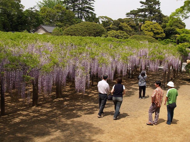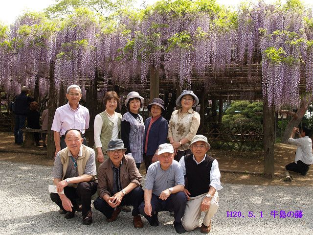 H20.5.1ゴールデンウイークを迎え五月晴れの爽快な日に、大場さんの案内で春日部市内の牛島の藤園を訪れました。敷地2haの庭園に咲く美しい藤紫は、国指定の特別天然記念物で花時の眺めは世界一だという案内でした。散策後駅前の洒落た店で寛ぎました。 2008年5月 1日