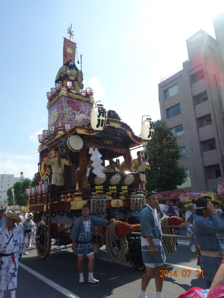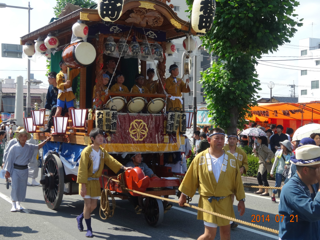 昼食後八坂神社の例大祭である「うちわ祭り」を見物しました。山車、屋台が熊谷囃子とともに市街地を巡行する様子は関東一の祇園祭りと称されているとのこと。