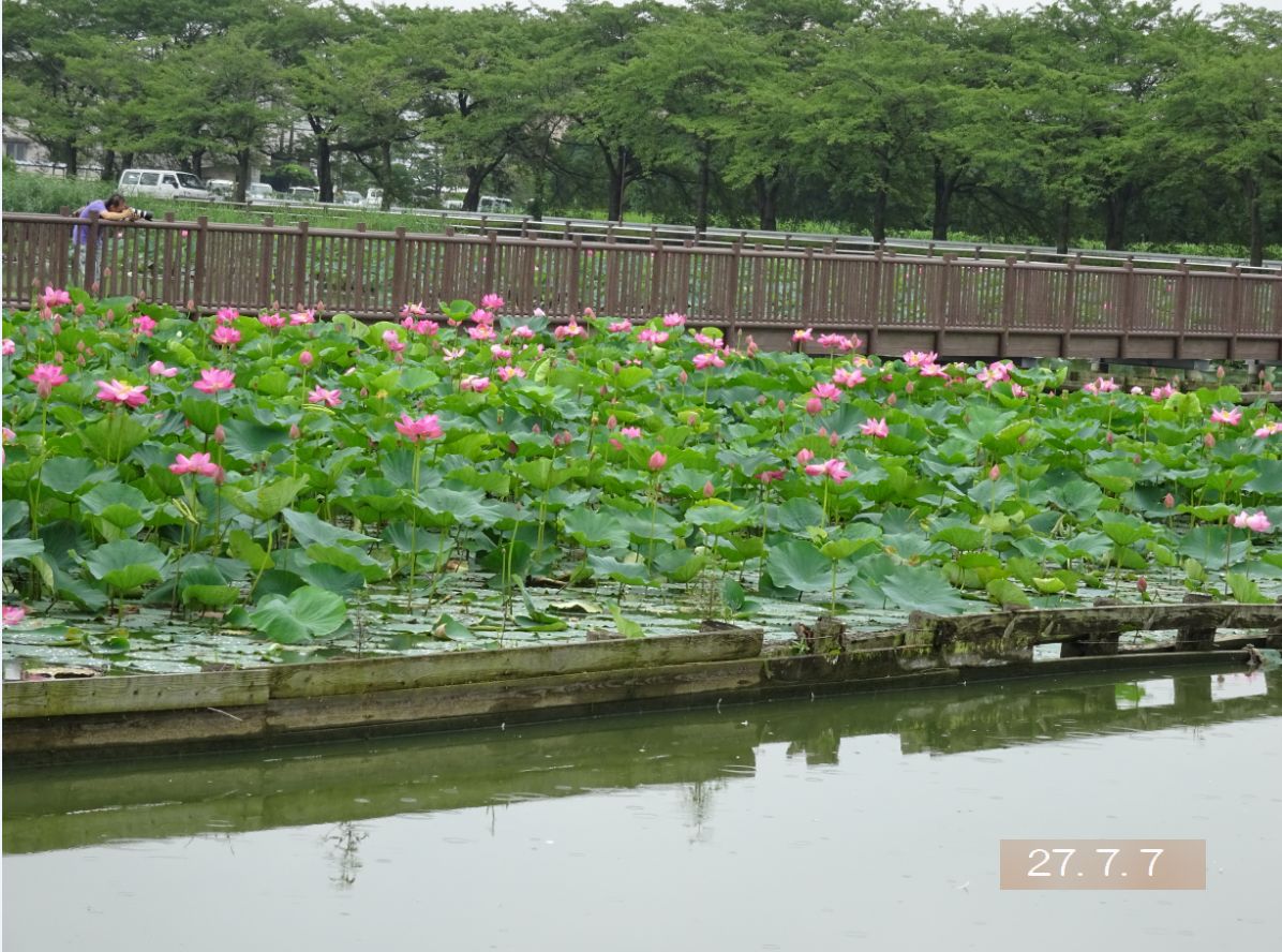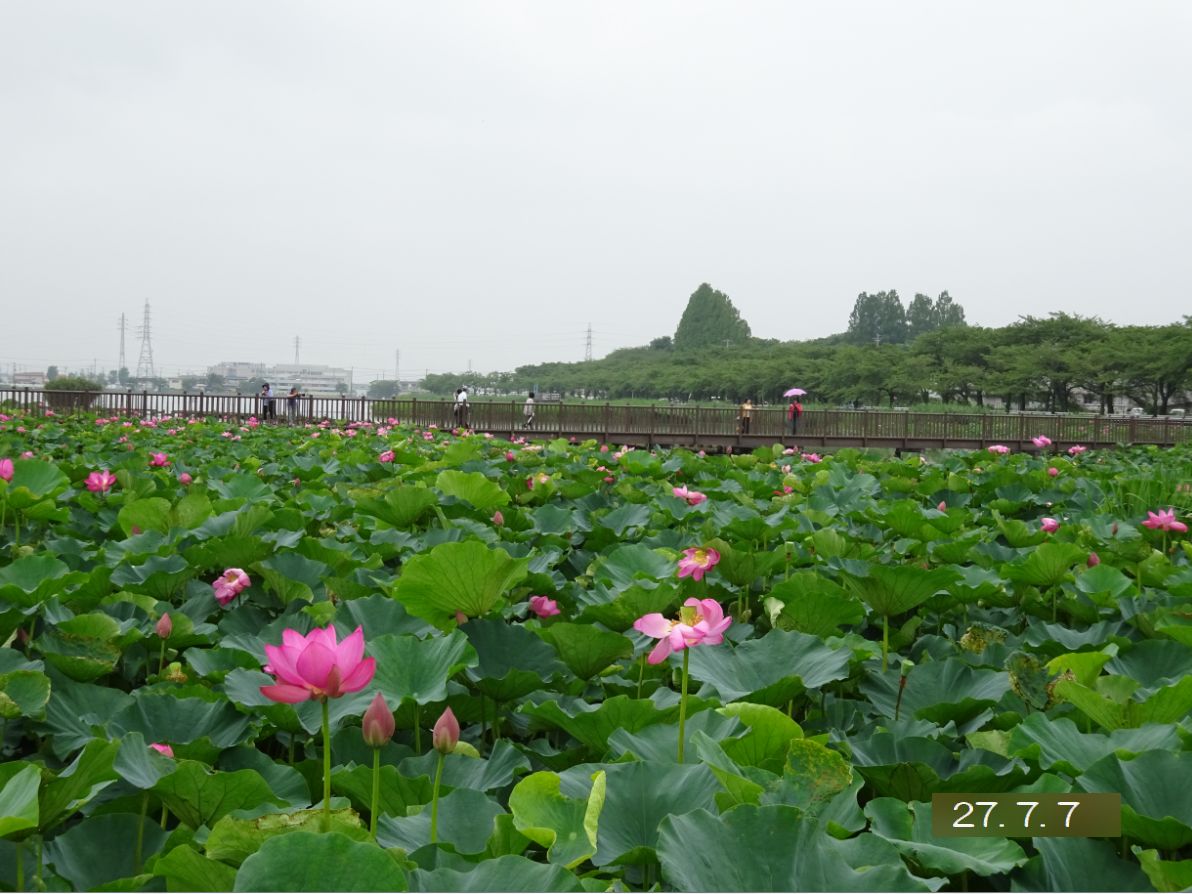 7月7日本格的な梅雨に入り鬱陶しい毎日が続く中、急に思いついて氷川神社の紫陽花を見に出かけました。残念!盛りを過ぎて期待した万華鏡の色とりどりの紫陽花を見ることが出来ませんでした。 帰途、それでは伊佐沼の蓮はどうかと寄ってみました。盛りは過ぎたようですがまだ蕾も多少残っているので暫くは見られそうです。蓮の花弁は早朝開くそうですが時計を見ると正午でした。 2015年7月 7日