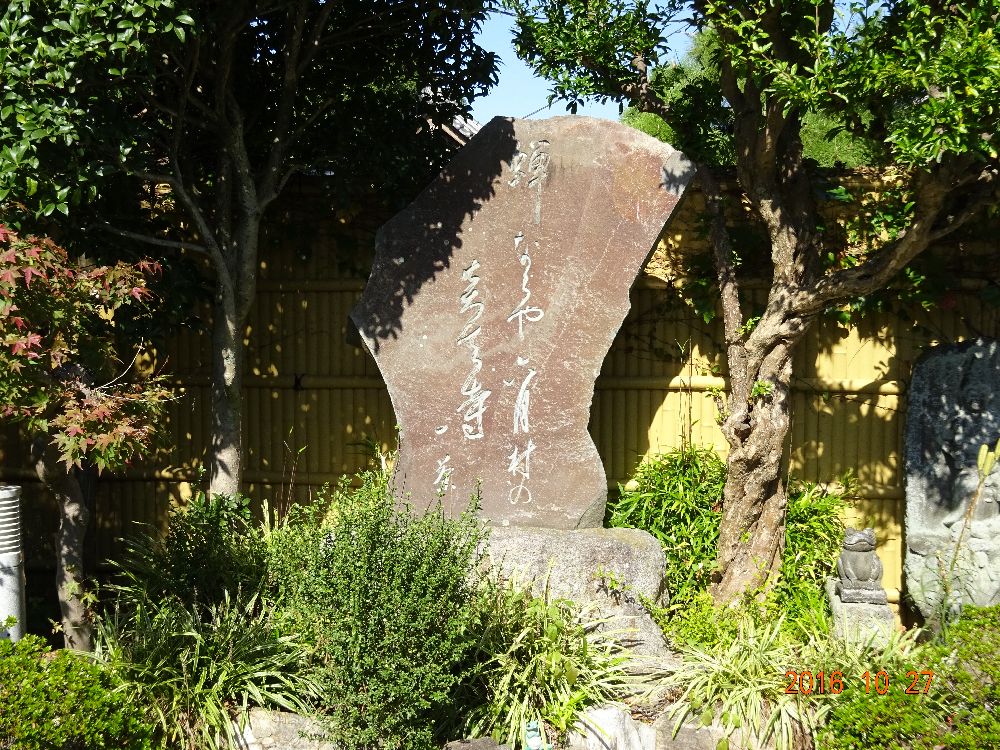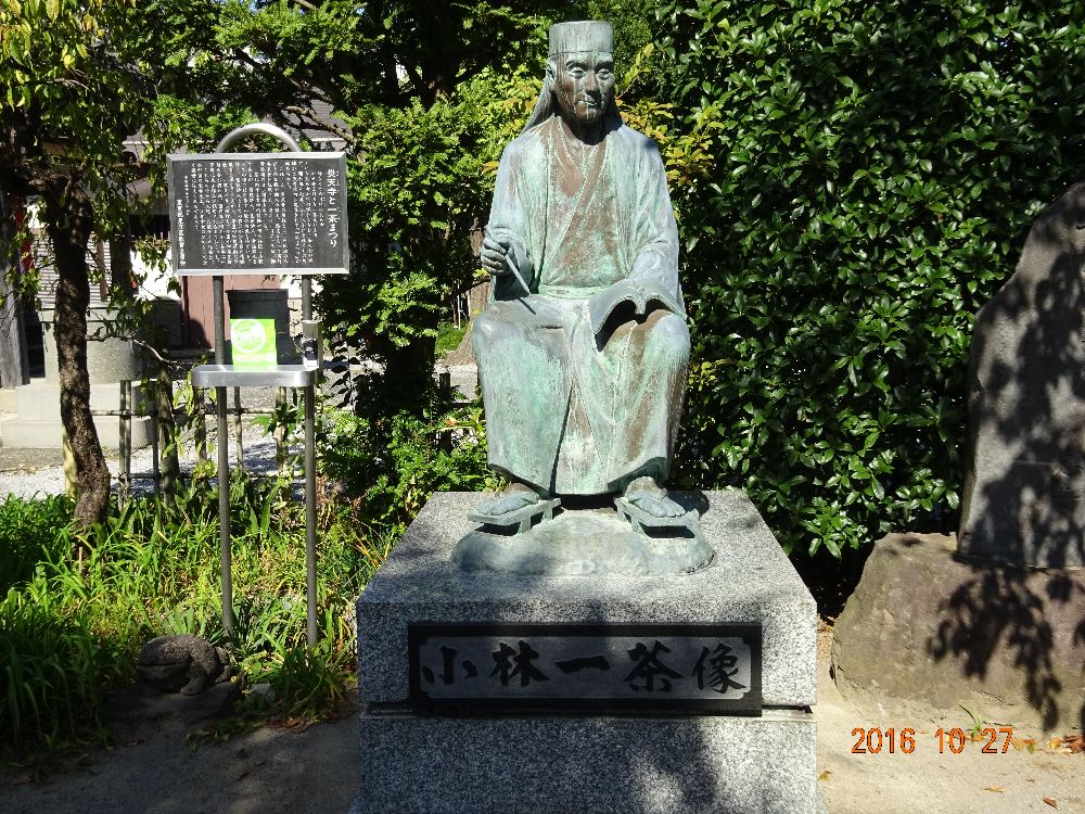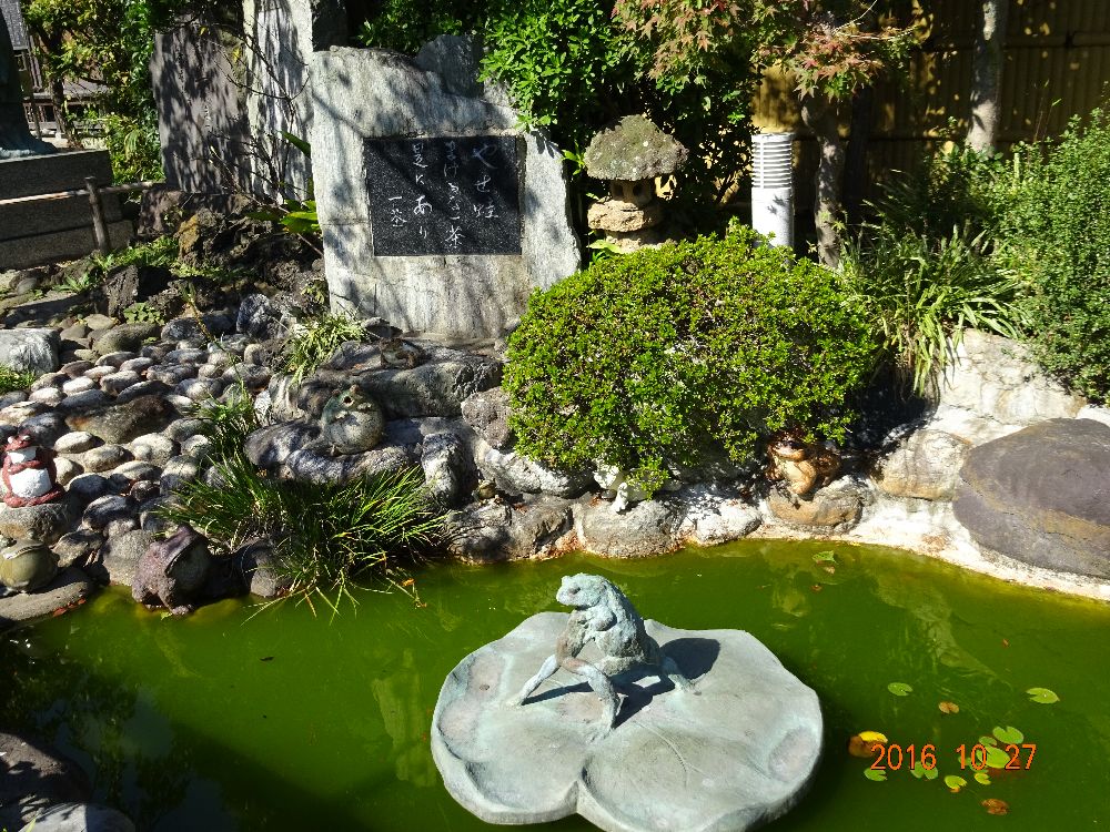 旧街道の中間にある⑩炎天寺は「俳句寺」として知られています。一茶の句碑に「やせ蛙負けるな一茶ここにあり」の名句がありました。昔から集まって激しい「蛙の戦い」言われてきましたが実は蝦蟇の集団生殖行動だったそうです。
