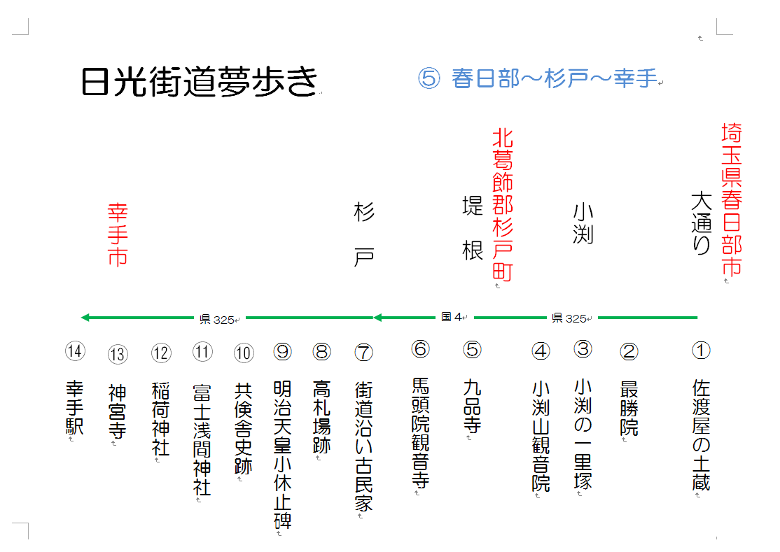 ⑤ 粕壁宿~杉戸宿~幸手宿 12.9キロ