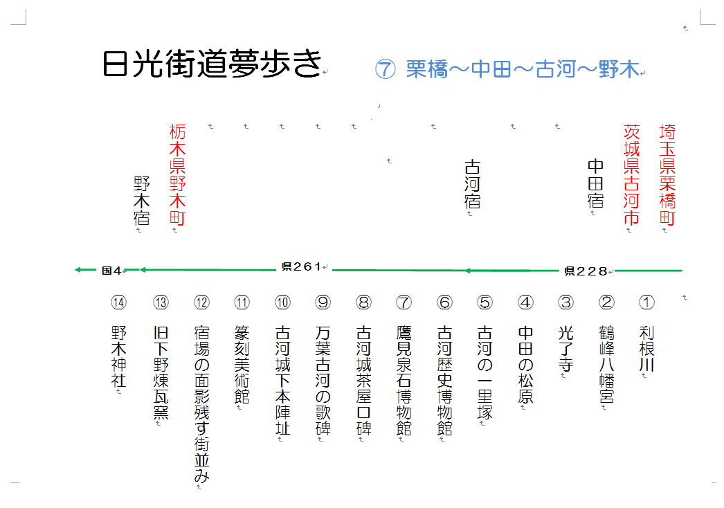 ⑦栗橋宿~中田宿~古河宿~野木宿 10.9キロ