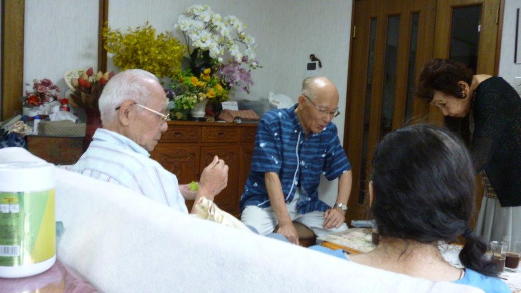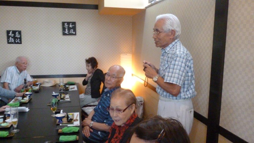 先生は終始にこやかな奥さまとご同伴で、70年前の想い出と現在はカメラ、旅行、尺八等趣味の世界を楽しんでいるお話を伺いました。眼が若干不自由とのお話ですが、当時悪餓鬼が震え上がったスポーツマンの面影は今でも残っていました。