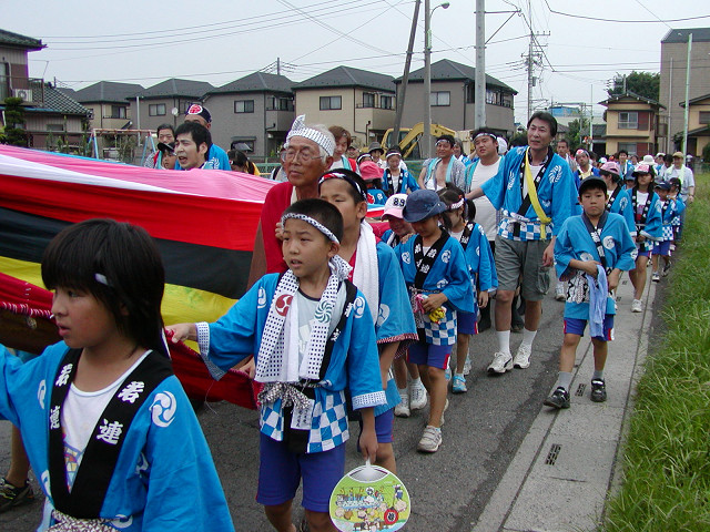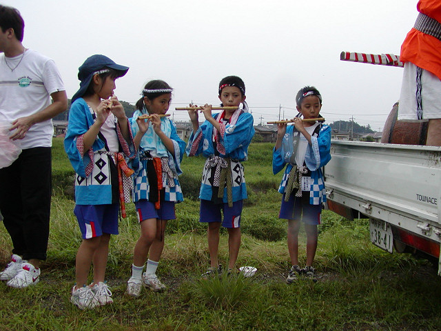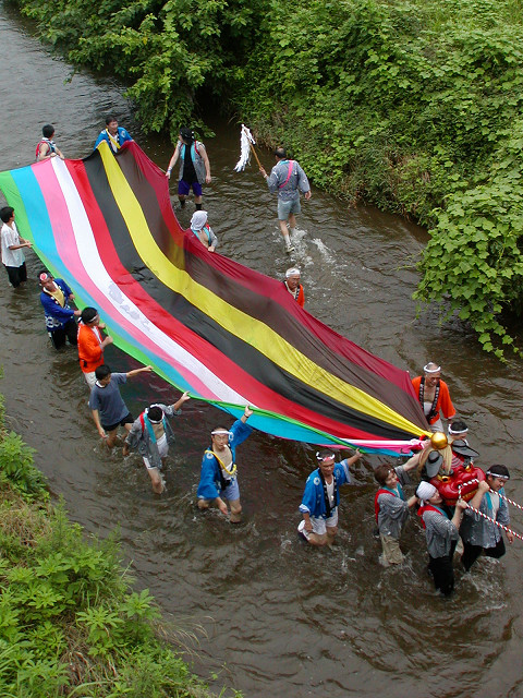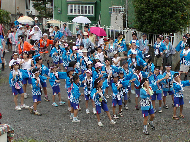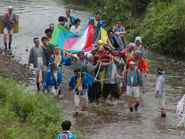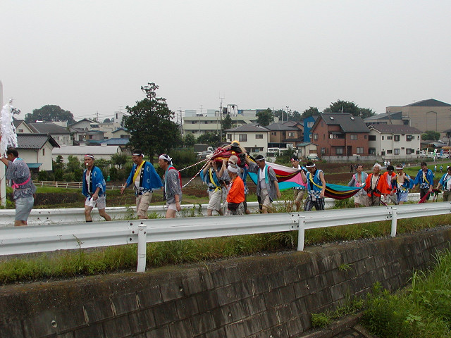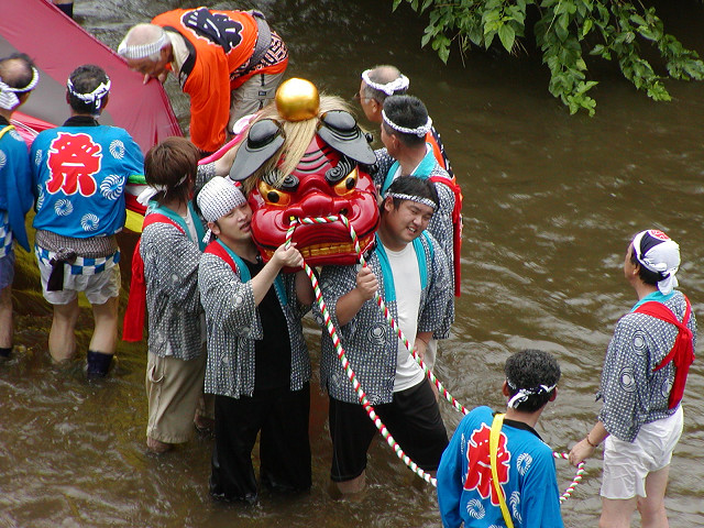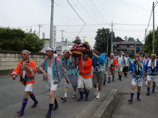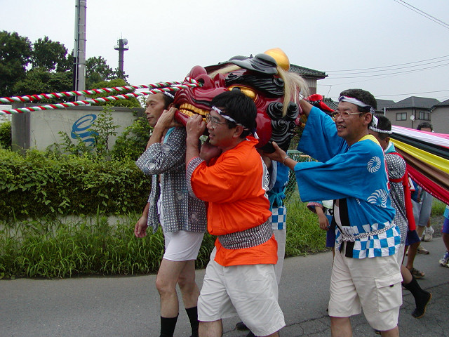 毎年7月の八坂神社の夏祭り「天王さま」の日に無病息災、五穀豊穣を願って獅子舞が奉納されます。獅子を肩に担ぎ獅子頭の後の長い幕(水引)の胴体につかまって村を廻り踊るのが特色です。小畦川に入り獅子頭のけがれを落とす様子は迫力があります。他の民俗芸能と同様に後継者が少なくなることを憂慮していました。 2006年7月16日